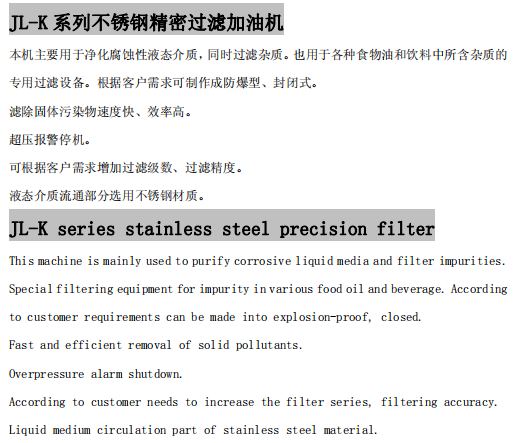 JL-K系列不銹鋼精密過(guò)濾加油機(jī)