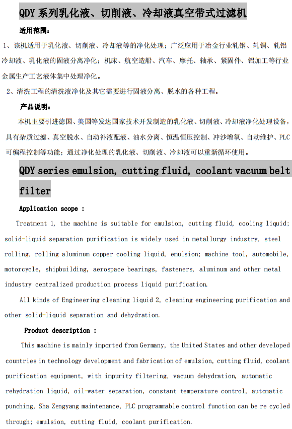 QDY系列乳化液、切削液、冷卻液真空帶式過(guò)濾機(jī)